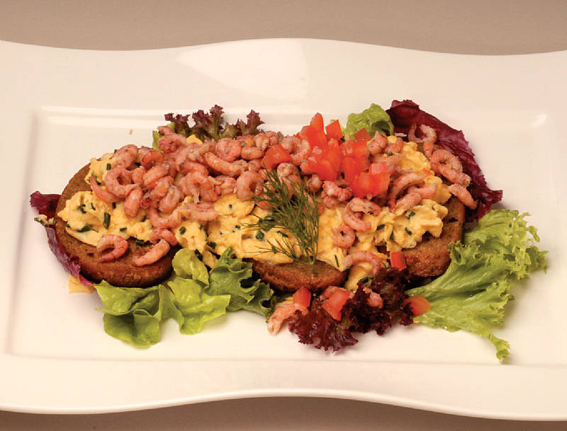 Krabben mit Rührei auf Bauernbrot |