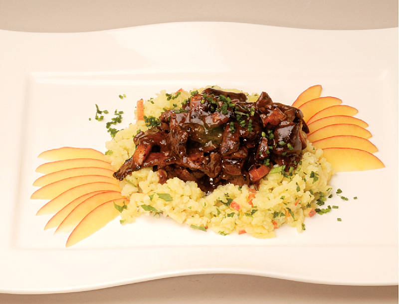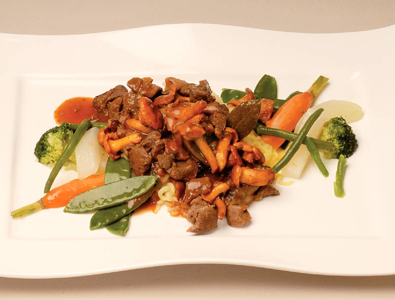 Gulasch aus der RehkeuleN mit Gartengemüse auf Kartoffelschnee |