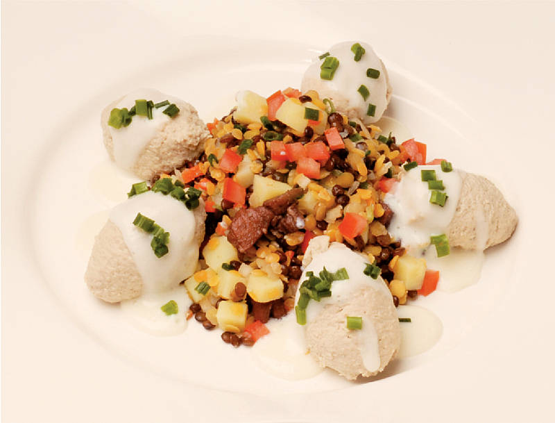 Kasseler-Nocken auf Linsengemüse |