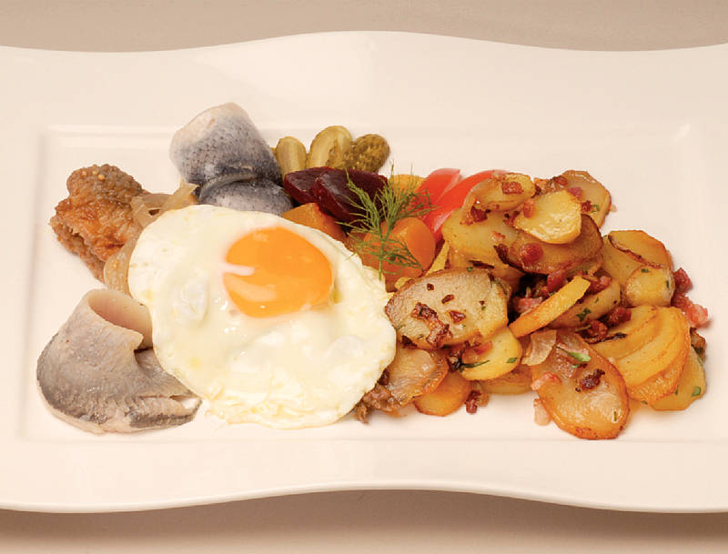 Dreierlei Hering auf Bratkartoffeln mit Spiegelei |