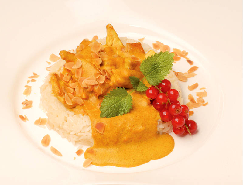 Geflügel-Curry-Ragout auf Mandelreis |