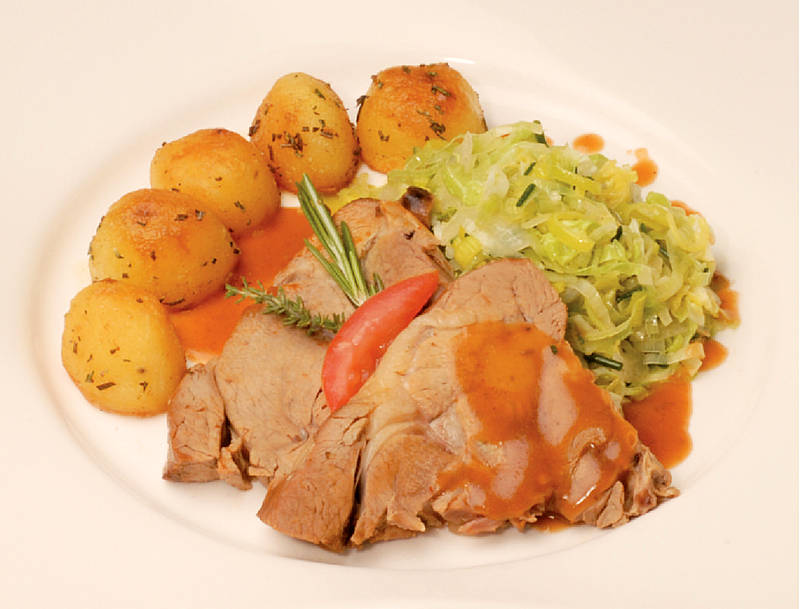 Braten von der Lammkeule mit Rosmarinkartoffeln und Lauch-Wirsing-Gemüse |