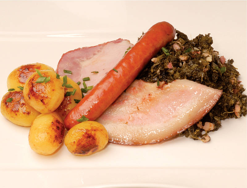 Dithmarscher Grünkohl mit Kasseler, Mettenden, Backe und süße Kartoffeln |