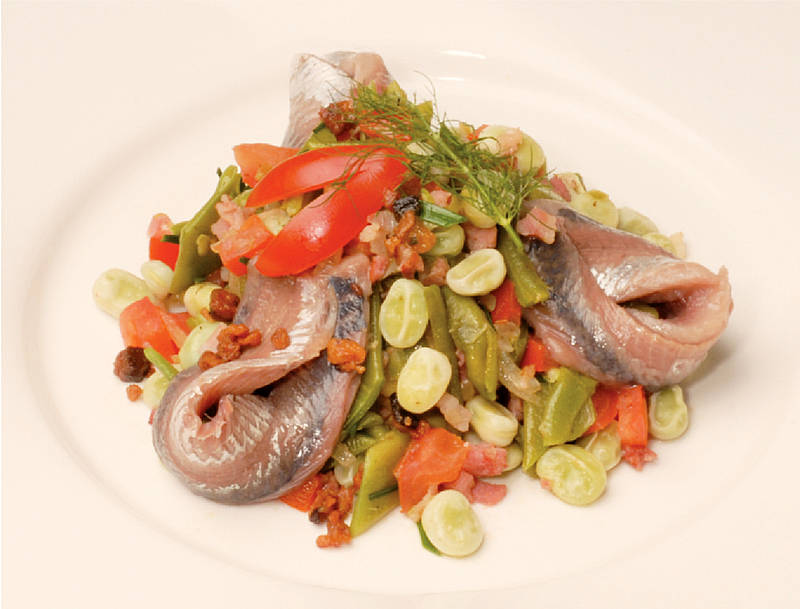 Lübecker Matjes mit Bohnengemüse auf Rübenmalheur |