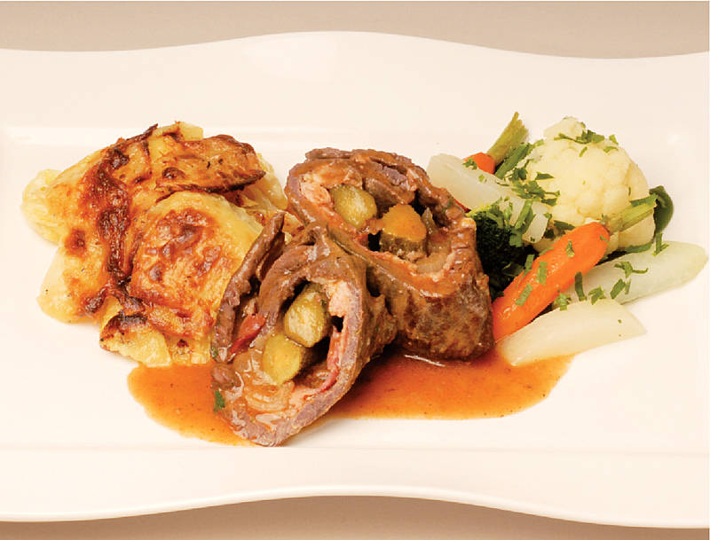Rinderroulade mit Auflaufkartoffeln und Lauch-Wirsing-Gemüse |