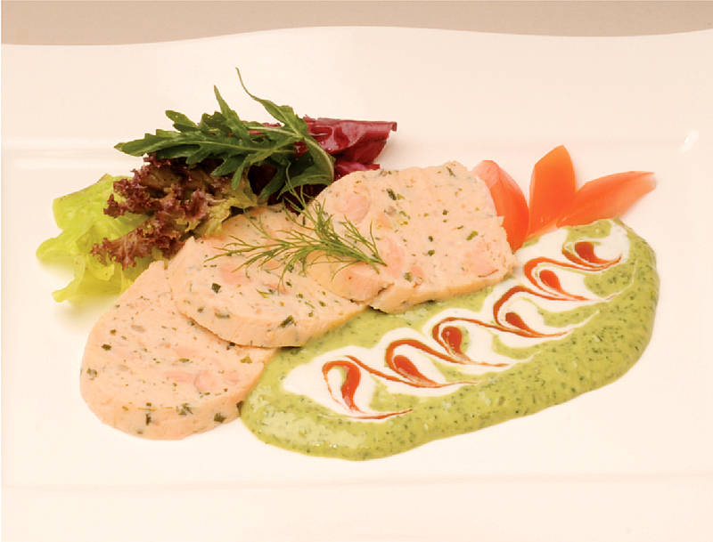 Terrine vom Lachsfilet auf Blattsalat |