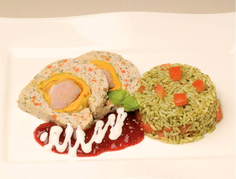 Ententerrine auf pikant sautiertem Reis |